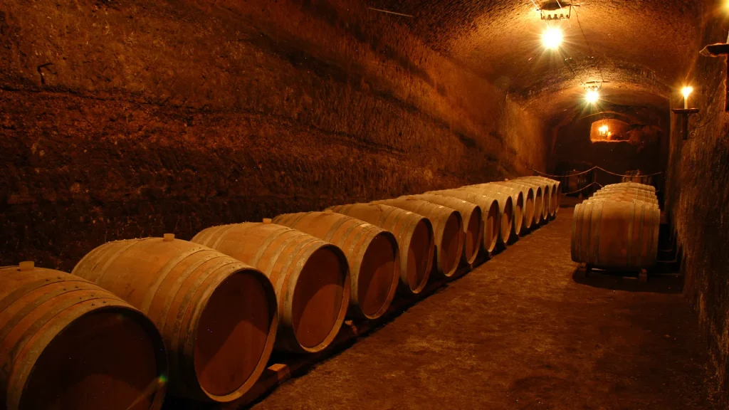 sotterranei della cantina, oggi adibiti ad ospitare le barrique in rovere, dove riposa il “